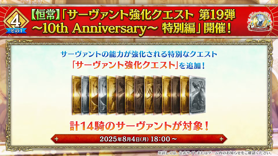 【FGO】10周年なんだし強化クエストの数もうちょい増やしてほしかったな