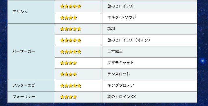 セイバーウォーズ2の特攻鯖をアイコンで並べるとこんな感じ!